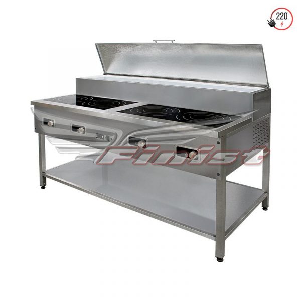 Для удобства работы двух поваров и скорости отдачи готовых блюд изделие имеет две зоны с независимыми панелями управления. Изготавливается индивидуально, исходя из пожеланий заказчика. Модуль может быть оснащён дверями и ящиками, в том числе с охлаждением.