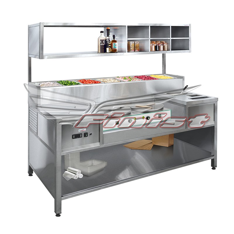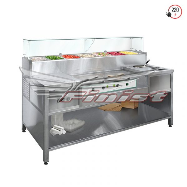 При поточном производстве блинов необходимо всё иметь под рукой. И сам блинный аппарат, и гастроёмкости с тестом и начинками. Блинная станция, изготовленная по вашим размерам, вместит в себя всё вышеперечисленно