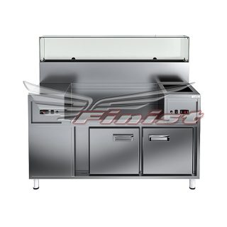 Блинная станция состоит из стола с местом под установку блинного аппарат и охлаждаемой витрины, отверстием под гастроемкости с начинками для блинов. Станция изготавливается индивидуально, исходя из габаритов блинного аппарата и пожеланий заказчика. Может быть оснащена дверями и ящиками.