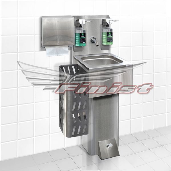 Гигиенический стенд представляет собой комплексное решение для мытья рук и стерилизации. Наличие педали для подачи воды в этой модели, экономит время споласкивания и делает незаменимым использование данного рукомойника в больнице и других медицинских учреждениях.
