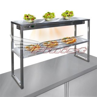 ИК-подогреватель представляет собой коробчатую конструкцию, внутри которой находится керамический нагревательный элемент. Тепловое излучение фокусируется в заданном направлении с помощью металлических отражателей, равномерно охватывая рабочую зону. Прочный недеформирующийся корпус из нержавеющей стали и металлическая защита нагревательного элемента обеспечивают безопасность использования. Регулировка механическая, осуществляется ручным включением/ выключением. Модели ИК-подогревателей работают от сети 220 В. Они идеально дополняют настольную полку, тем самым увеличивая полезную площадь выкладки блюд. Полки могут быть одноярусные и двухъярусные. Помимо этого, мы предлагаем и другие варианты монтажа. Это могут быть переносные ИК-подогреватели, без крепления к столешнице, подвеска на цепях или стационарные подставки, скрывающие проводку. Подставки, как и корпус самого ИК-подогреватея, доступны в дизайнерском цвете.