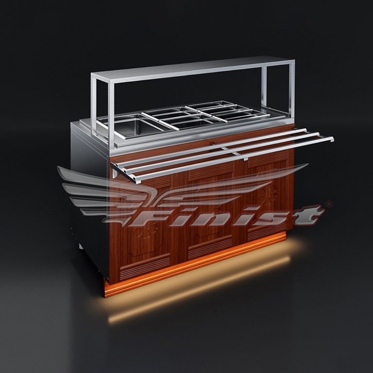 Опционально полки-надстройки мармита возможно оснастить подогревом. Это позволит не только увеличить площадь полезной выкладки, но и блюда сохранят необходимую температуру до покупки их гостями.