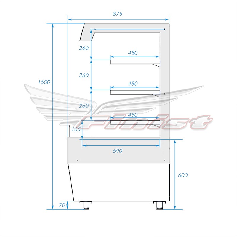 | Напольная холодильная витрина-горка ELEGY | E3/1045 | 1045х875х1600 | рабочая температура +4°…+10°С, напряжение 220В, краш. сталь, стекло, подсветка, 3 полки |