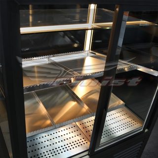 Стеклопакет со всех сторон позволяет рассматривать товар со всех сторон и поддерживать заданный температурный режим 0..+7°С.