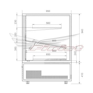 Увеличенная глубина позволяет помещать внутрь витрины шампуры длиной до 850 мм. Выкладка продукции осуществляется на дно витрины c гастроемкостями под шампуры, полку с GN для шампуров под наклоном (входят в комплект) и одну стеклянную полку.
