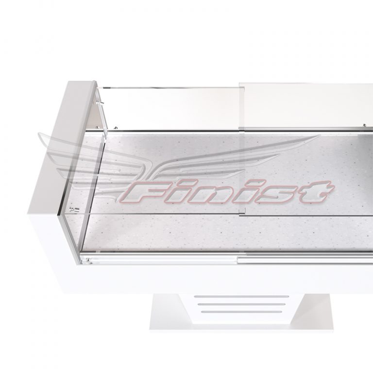 Одна из особенностей витрин Royal — охлаждаемая столешница из кварцевого агломерата. Кварцевый агломерат — это цельный и прочный монолит, он не содержит внутренних пустот, пор и микротрещин. Отличается высокой устойчивостью к царапинам, ему не страшны влажность, перепады температур и другие воздействия.