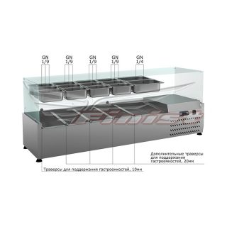 | Настольная холодильная витрина (с крышкой) | НХВк-10 GN1/4 | 2000х330х255 | 10шт GN 1/4-150 | 39 |