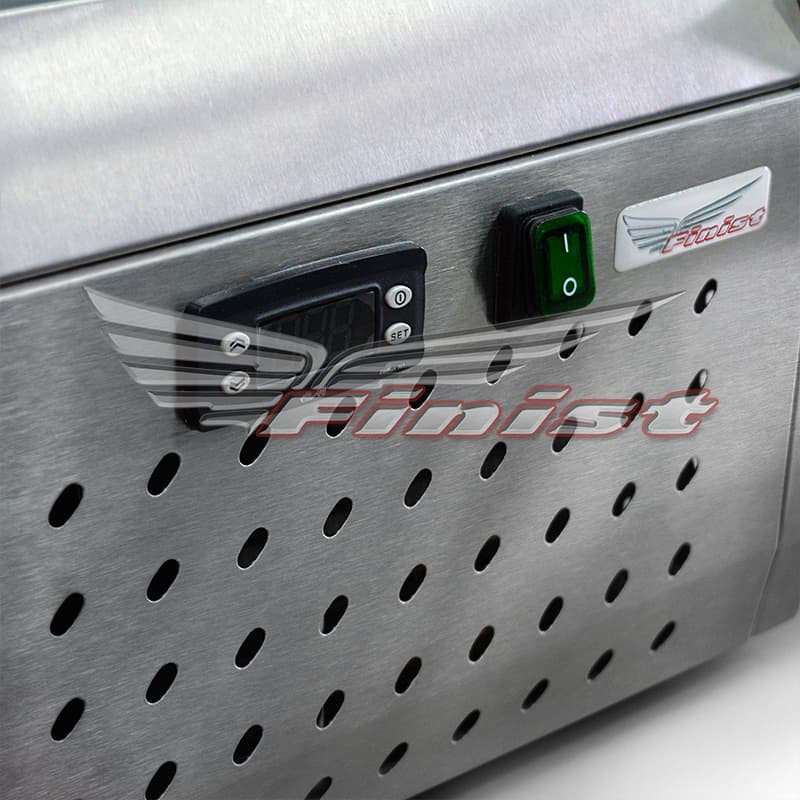 Прибор оснащен статическим охлаждением. Гастроемкости GN1/3 и GN1/2 глубиной 150мм приобретаются отдельно. Холодильная витрина — хорошее дополнение к холодильному столу или блинной станции.