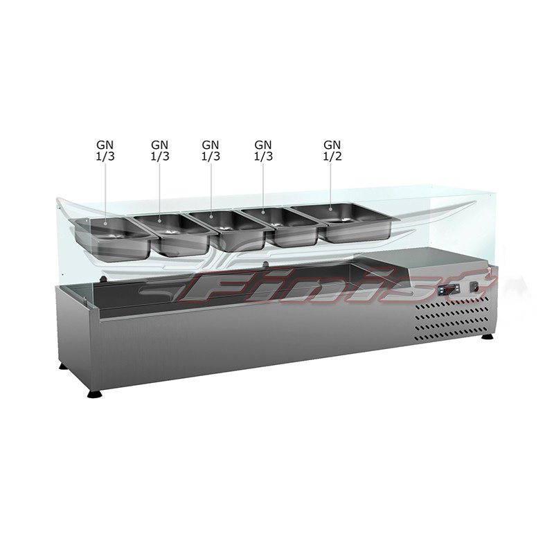 | Настольная холодильная витрина (со стеклом прямоугольным) | НХВсп-4,5 | 1400х390х510 | 4шт GN 1/3-150 + 1 шт GN 1/2-150 | 30 |