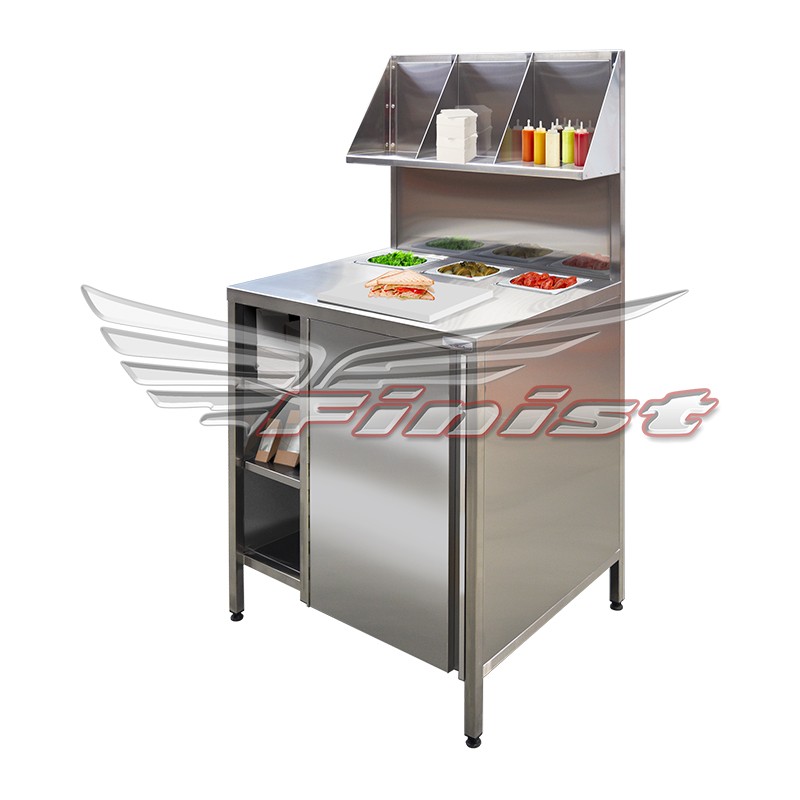 Станция для сборки сэндвичей состоит из двух основных частей, обеспечивающих максимально комфортную работу повара: