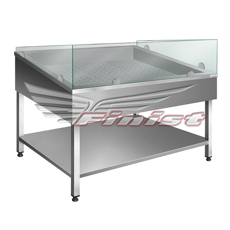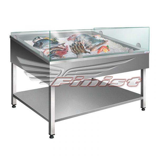 Витрина предназначена демонстрации рыбы и морепродуктов на льду. Витрина не комплектуется принудительным охлаждением. Изделие выполнено под наклоном, что позволяет покупателю видеть содержимое емкости. Двойные стенки позволяют дольше сохранять температуру в емкости и замедляют процесс таяния льда, а вмонтированный кран для слива воды позволяет подсоединить ванну напрямую к системе водоотведения. Для увеличения рабочего объема внутри витрины и исключения попадания грязи и пыли на продукты, охлаждаемый объем может быть закрыт стеклами. Дополнительно витрину можно укомплектовать перфорированным поддоном, дренажом для слива воды и промежуточной полкой.