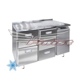 Низкотемпературный холодильный стол выполнен из высококачественной пищевой нержавеющей стали. Столы могут производиться (выпускаться) с распашными дверями (ящиками), которые имеют надежные петли (для ящиков направляющие) с опцией доводчиков, что обеспечивает гарантированное закрытие и поддержание заданной температуры в рабочем объеме стола. Передняя панель моторного отсека имеет большую площадь перфорации, что позволяет обеспечить холодильному агрегату поступление воздуха для охлаждения.