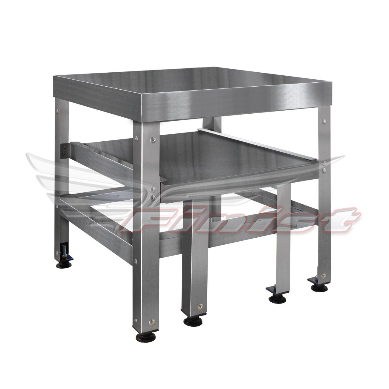 Подставка под электрооборудование изготовлена из шлифованной нержавеющей стали. Каркас может быть выполнен из оцинкованной или нержавеющей стали. Ножки оснащены регулируемыми по высоте полиамидными опорами для компенсации неровностей пола.