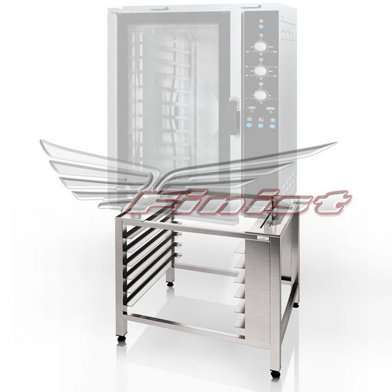 Подставка предназначена специально для установки пароконвектоматов Рубикон. Предотвращает опрокидывание техники, обеспечивает комфортные условия труда. Каркас сварной полностью выполнен из профильной нержавеющей трубы и оснащен регулируемыми по высоте опорами. Подставка оснащена 10 уровнями направляющих для хранения гастроемкостей GN 1/1.