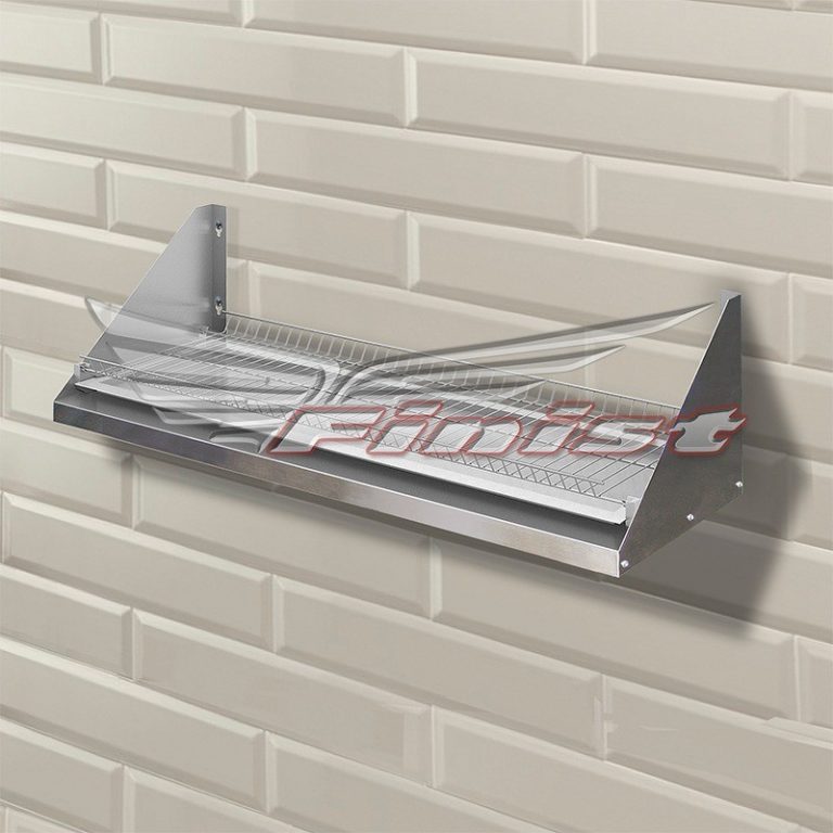 Полки полностью изготовлены из шлифованной нержавеющей стали. Конструкция полки позволяет подвешивать ее на стену или использовать как настольную. В комплект входит кассета для стаканов, а также съемный поддон для воды.