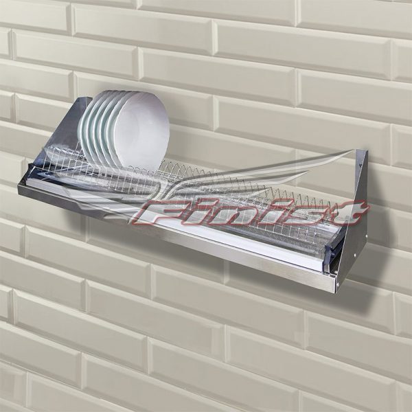 Полки полностью изготовлены из шлифованной нержавеющей стали. Конструкция полки позволяет подвешивать ее на стену или использовать как настольную. В комплект входит кассета для тарелок, а также съемный поддон для воды.