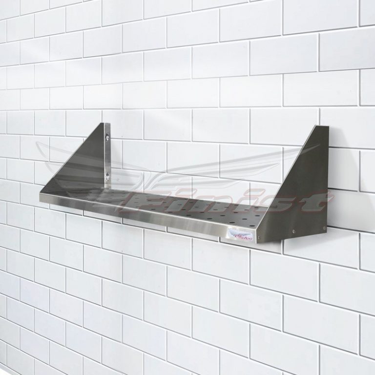 Полки полностью изготовлены из шлифованной нержавеющей стали. Особенностью конструкции является наличие отверстий для более эффективной сушки мелкого кухонного инвентаря.