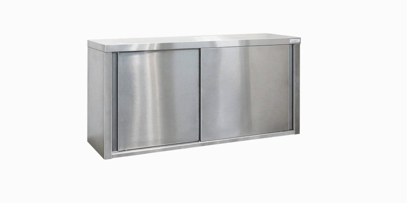 Полки изготовлены из шлифованной нержавеющей стали, задняя стенка оцинкованная. Наличие дверей «купе» обеспечивает аккуратный внешний вид, возможна установка замка.