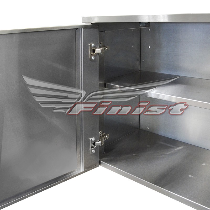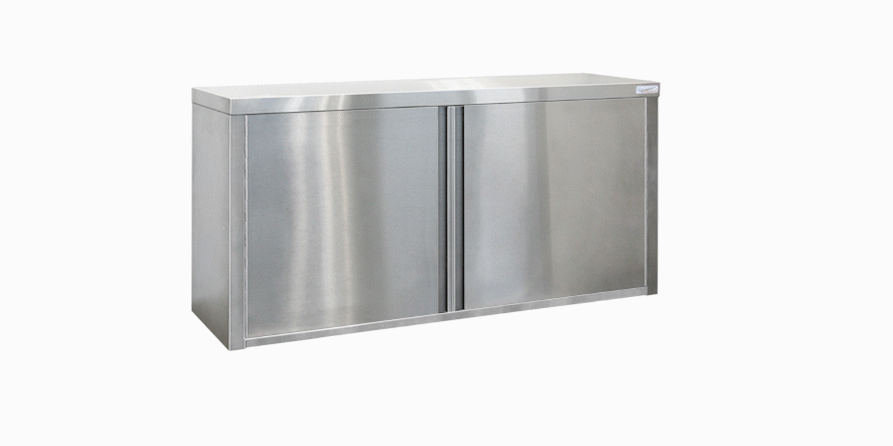 Полки изготовлены из шлифованной нержавеющей стали, задняя стенка оцинкованная. Наличие распашных дверей обеспечивает аккуратный внешний вид, возможна установка замка.
