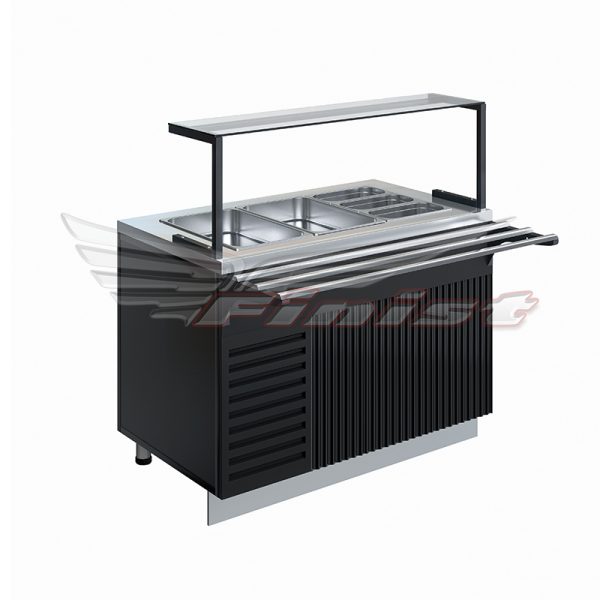 Продукты хранятся в гастроёмкостях, расположенных в охлаждаемой ванне. Габариты прилавка рассчитаны под использование гастроёмкости GN 1/1-150 мм (в комплект не входят). При использовании дополнительных перемычек возможно устанавливать в прилавок гастроёмкости меньшего формата.