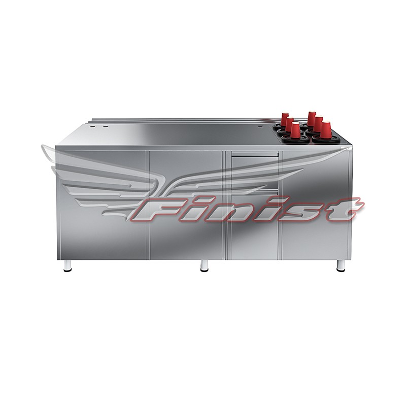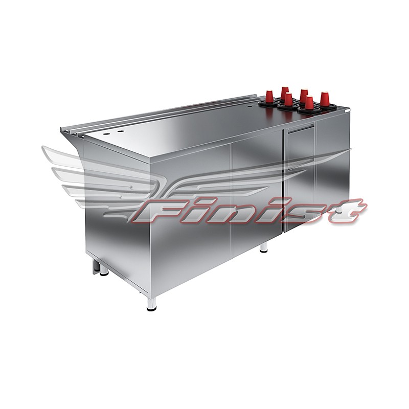 — встроенный диспенсер для стаканов, что позволяет оперативно хранить запас стаканов для розлива напитков. Количество диспенсеров и их расположение может быть изменено на основе поставленных задач.
