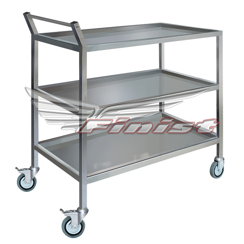 Представляет собой разборную конструкцию из профильной трубы со съемными поддонами глубиной 20 мм. Выполнена полностью из нержавеющей стали. Передвижение тележки осуществляется на четырех поворотных колесах, диаметром 100 мм, два из которых имеют тормозное устройство.