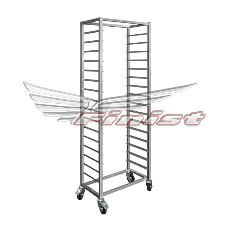 Разборная тележка-шпилька предназначена для кратковременного хранения продуктов, перемещения продуктов внутри доготовочных цехов. Каркас — разборный, выполнен из нержавеющей профильной трубы. направляющие изготовлены из листовой нержавеющей стали. Противни в комплект не входят.