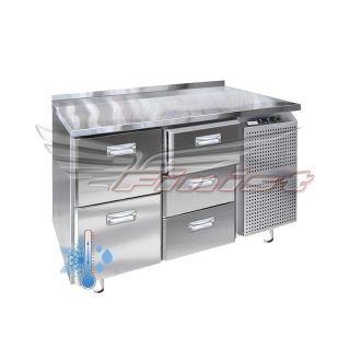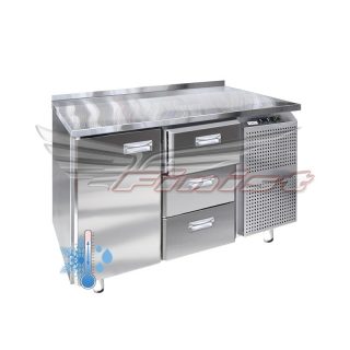 Холодильный стол выполнен из высококачественной пищевой нержавеющей стали. Столы могут производиться (выпускаться) с распашными дверями (ящиками), которые имеют надежные петли (для ящиков направляющие) с опцией доводчиков, что обеспечивает гарантированное закрытие и поддержание заданной температуры в рабочем объеме стола. Используется электрический блок управления с функцией автоматической оттайки. Передняя панель моторного отсека имеет большую площадь перфорации, что позволяет обеспечить холодильному агрегату поступление воздуха для охлаждения.