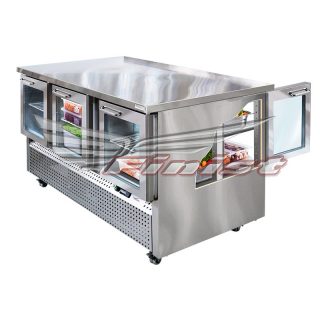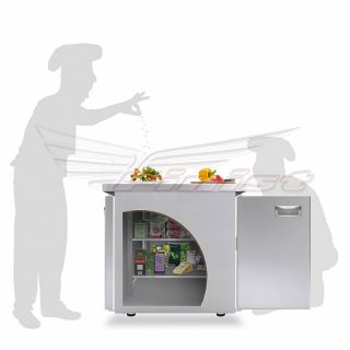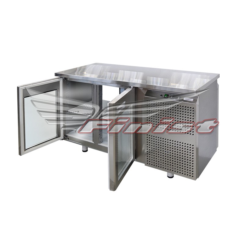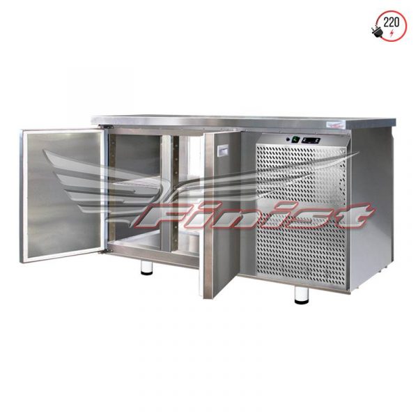 Холодильный стол выполнен из высококачественной пищевой нержавеющей стали. Столы могут производиться (выпускаться) с распашными дверями (ящиками), которые имеют надежные петли (для ящиков направляющие) с опцией доводчиков, что обеспечивает гарантированное закрытие и поддержание заданной температуры в рабочем объеме стола. Используется электрический блок управления с функцией автоматической оттайки. Передняя панель моторного отсека имеет большую площадь перфорации, что позволяет обеспечить холодильному агрегату поступление воздуха для охлаждения.