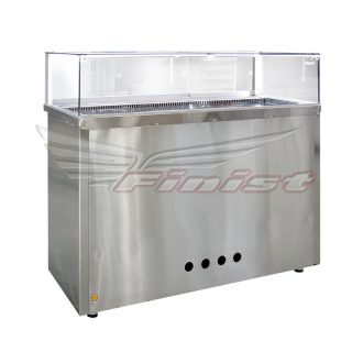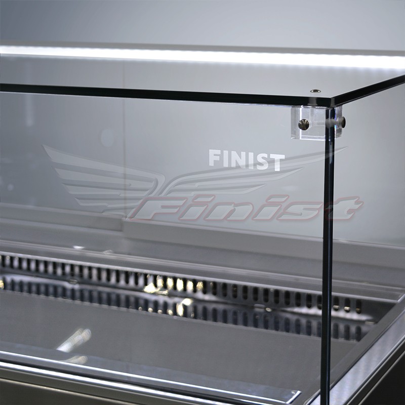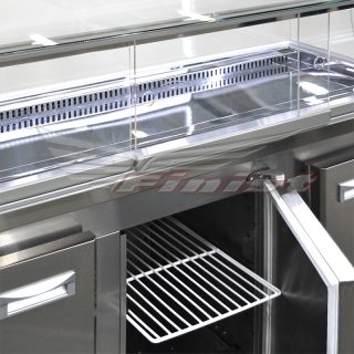 Стеклянный купол витрины позволяет выгодно подать и кратковременно хранить кондитерские изделия. Для более длительного хранения продукции необходимо использовать холодильный объем, расположенный под витриной. Благодаря такой конструкции торговое пространство не уменьшается. Стеклянный купол можно выполнить в различном исполнении (под наклоном или без). Дверцы купе выполнены из оргстекла.