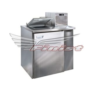 Холодильный стол выполнен из высококачественной пищевой нержавеющей стали. Столы производятся (выпускаются) только с распашными дверями, которые имеют надежные петли с опцией доводчиков, что обеспечивает гарантированное закрытие и поддержание заданной температуры в рабочем объеме стола. Используется электрический блок управления с функцией автоматической оттайки. Передняя панель моторного отсека имеет большую площадь перфорации, что позволяет обеспечить холодильному агрегату поступление воздуха для охлаждения.