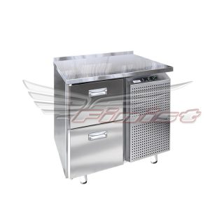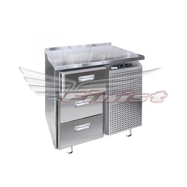 Холодильный стол выполнен из высококачественной пищевой нержавеющей стали. Столы могут производиться (выпускаться) с распашными дверями (ящиками), которые имеют надежные петли (для ящиков направляющие) с опцией доводчиков, что обеспечивает гарантированное закрытие и поддержание заданной температуры в рабочем объеме стола. Используется электрический блок управления с функцией автоматической оттайки. Передняя панель моторного отсека имеет большую площадь перфорации, что позволяет обеспечить холодильному агрегату поступление воздуха для охлаждения.