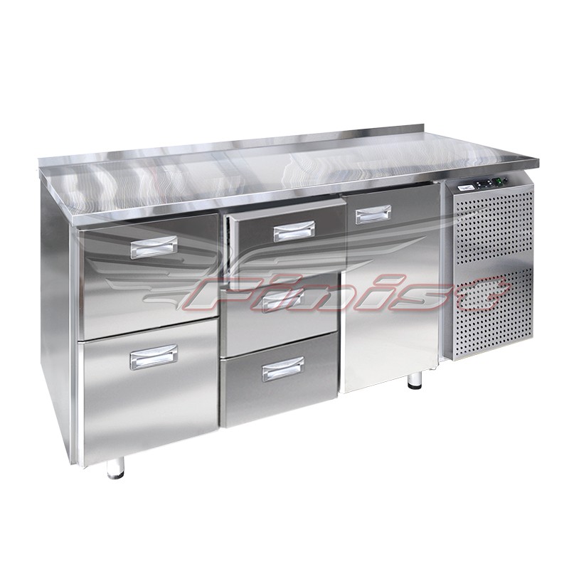 Холодильный стол выполнен из высококачественной пищевой нержавеющей стали. Столы могут производиться (выпускаться) с распашными дверями (ящиками), которые имеют надежные петли (для ящиков направляющие) с опцией доводчиков, что обеспечивает гарантированное закрытие и поддержание заданной температуры в рабочем объеме стола. Используется электрический блок управления с функцией автоматической оттайки. Передняя панель моторного отсека имеет большую площадь перфорации, что позволяет обеспечить холодильному агрегату поступление воздуха для охлаждения.