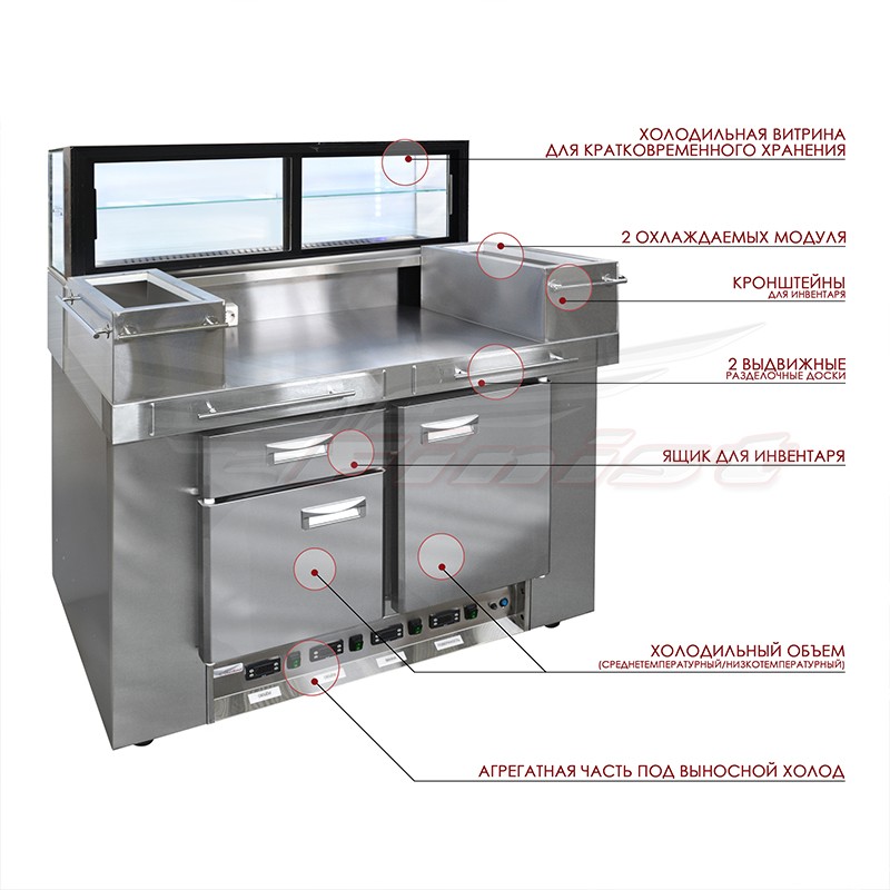 Станция изготавливается индивидуально, исходя из габаритов блинного аппарата и пожеланий заказчика.