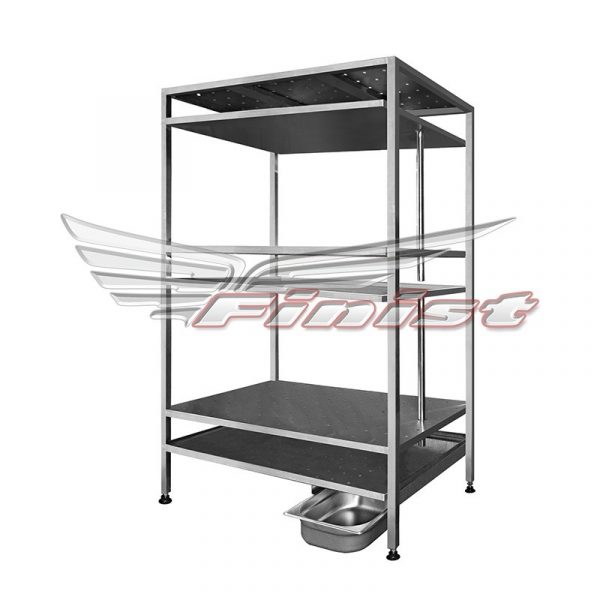 Стеллаж для дефростации используется для размещения на нем замороженных продуктов. Полки стеллажа выполнены таким образом, что вся жидкость от размороженных продуктов стекает через технологические отверстия в емкость, расположенную под стеллажом. Стеллаж представляет собой сварную конструкцию. Все детали выполнены из высококачественной нержавеющей стали.