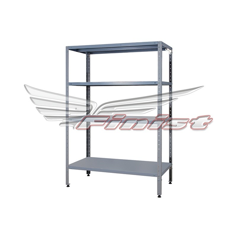 В стандартном исполнении – 4 полки. В стойках стеллаж имеются пазы для возможного регулирования уровня полок. Стойки стеллажа оснащены регулируемыми опорами для компенсации неровностей пола. Стеллажи поставляются упакованными, в разобранном виде.