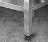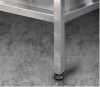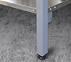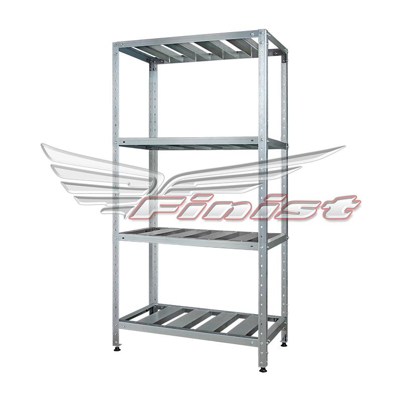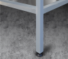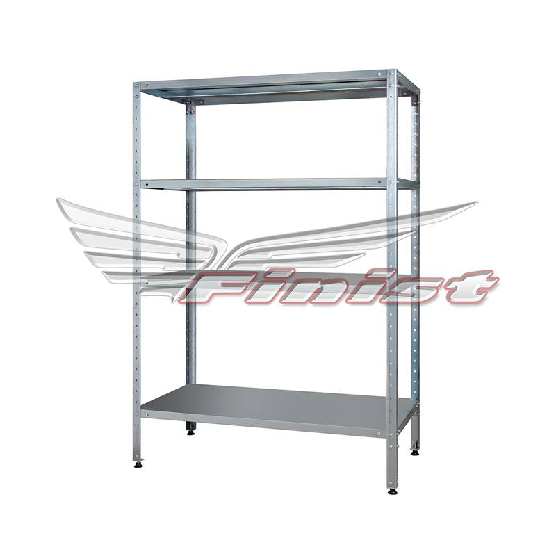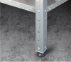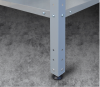 В стандартном исполнении – 4 полки. В стойках стеллаж имеются пазы для возможного регулирования уровня полок. Стойки стеллажа оснащены регулируемыми опорами для компенсации неровностей пола. Стеллажи поставляются упакованными, в разобранном виде.