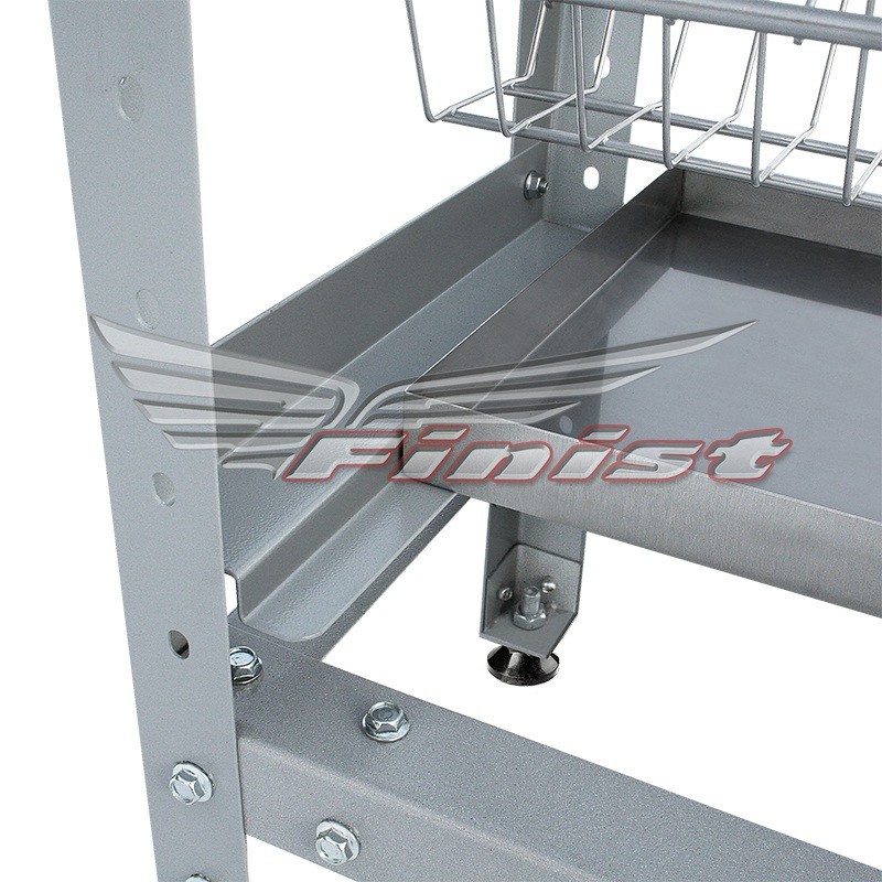Стеллаж с полками-сушками для тарелок предназначен для использования в технологических помещениях предприятий общественного питания для сушки кухонной и столовой посуды, инвентаря. Полки выполнены из прутка с полимерно — порошковым покрытием. Каркас стеллажа разборный. Стеллажи в стандартном исполнении имеют 4 полки.