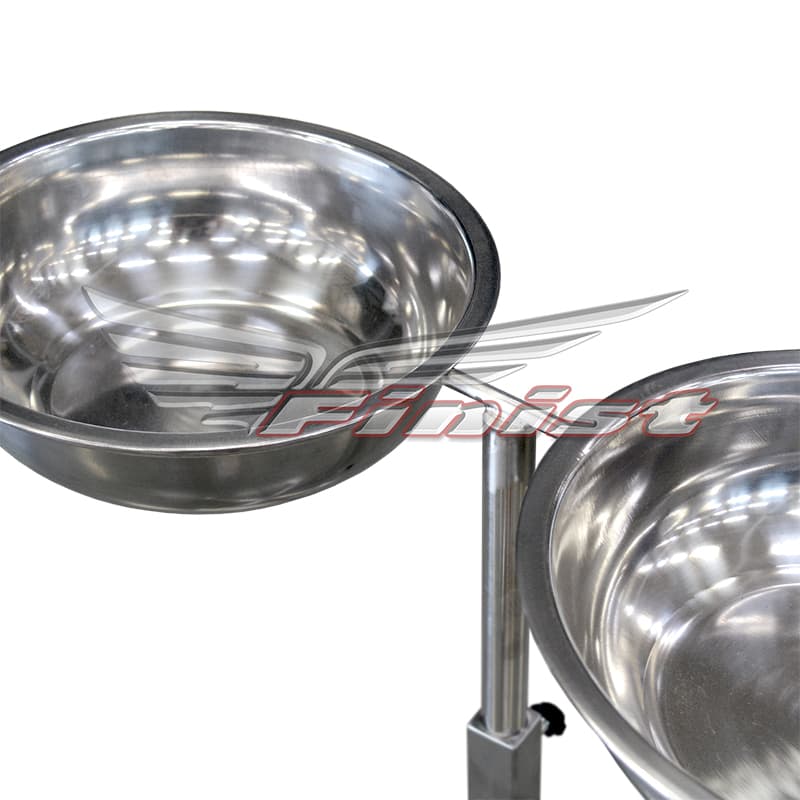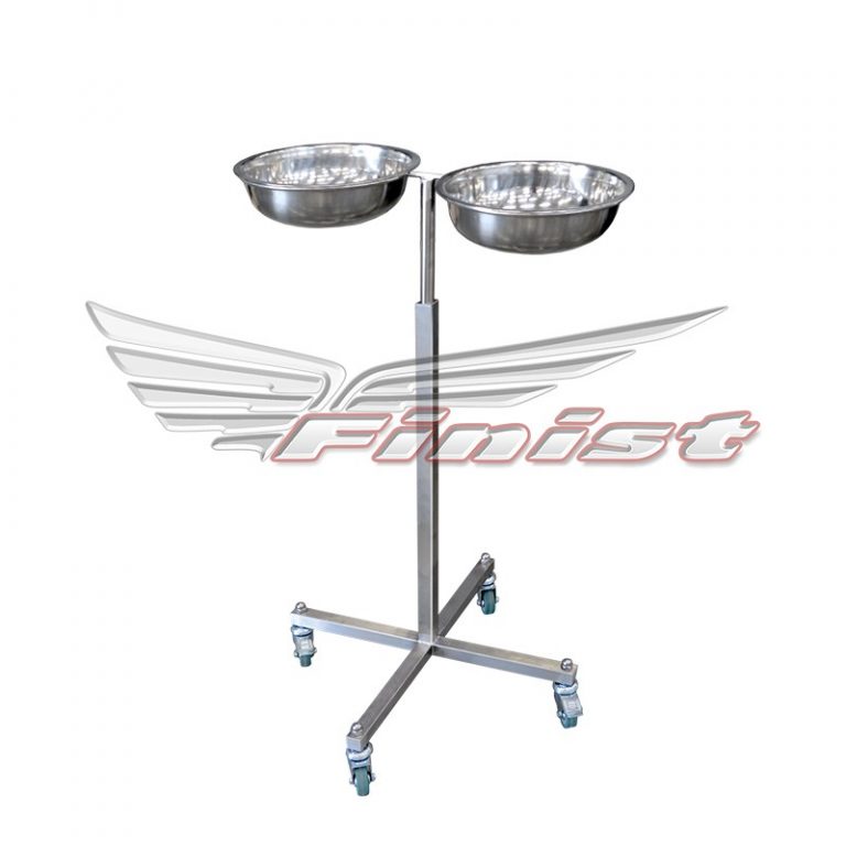 Комплектуется 2 тазами диаметром 248 мм. Наличие винтового зажима позволяет регулировать стойку под нужную персоналу высоту.
