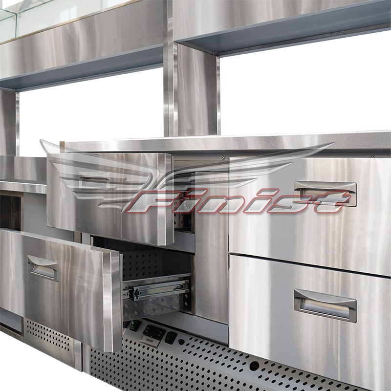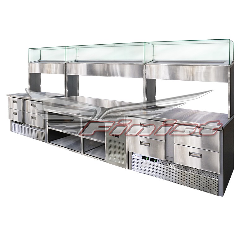 — холодильные столы для хранения продуктов и напитков с нижним расположением агрегата, что обеспечивает существенную вместимость, удобство в эксплуатации и премиальность исполнения.