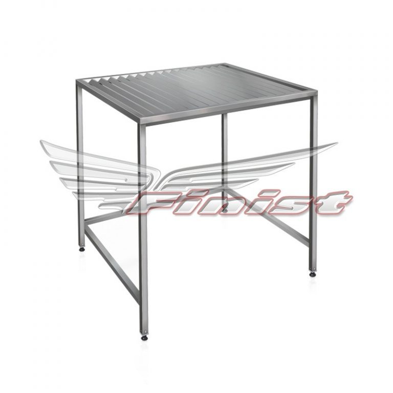 Полностью выполнен из профильной нержавеющей трубы. Дополнительно возможно оснастить емкостью под столешницей.