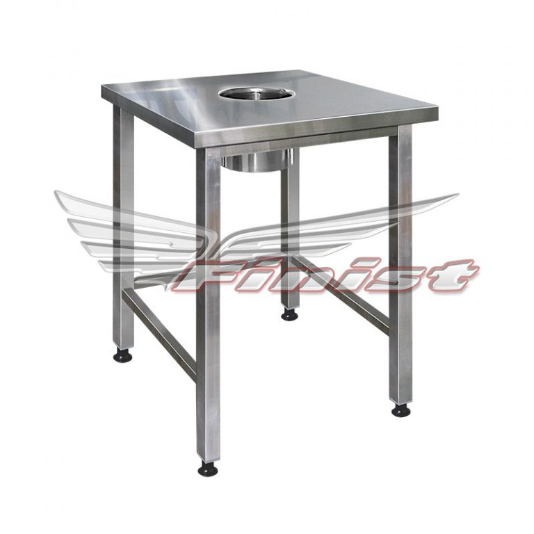 Столешница стола изготовлена из шлифованной нержавеющей стали. Столы имеют отверстие для сбора отходов диаметром 170 мм.