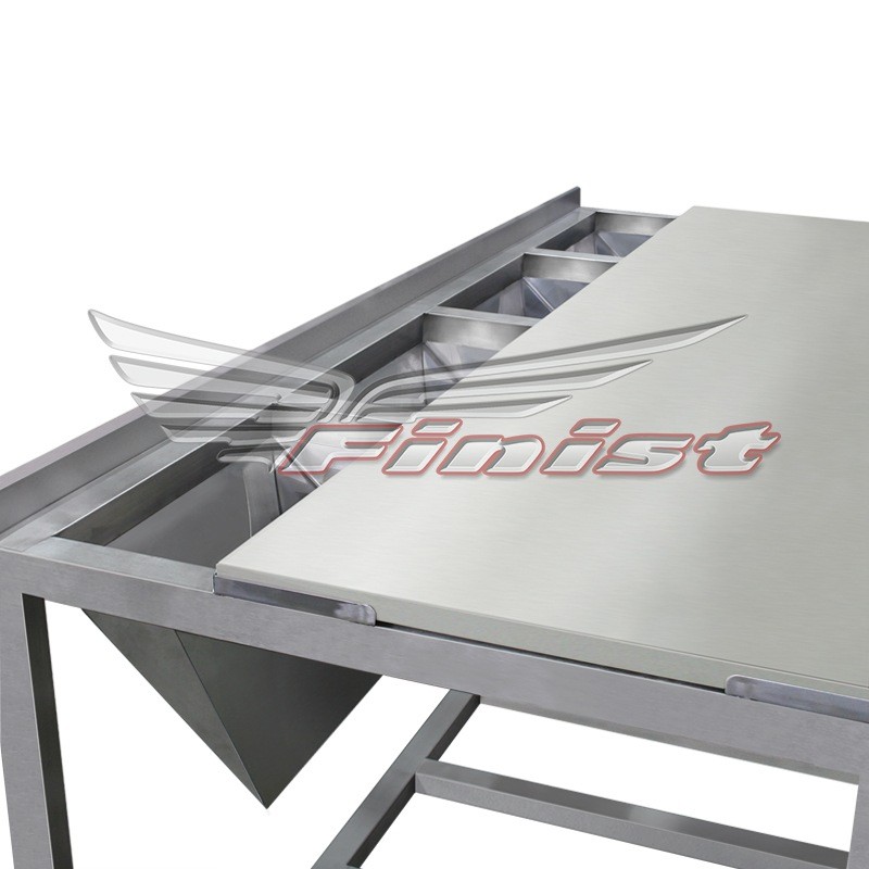 Стол предназначен для обвалки, сортировки и дальнейшей переработки сырья и производства полуфабрикатов. Незаменим для организации рабочего места на предприятиях мясной промышленности, в разделочных мясных цехах магазинов и предприятиях общественного питания. В столешнице предусмотрены отсеки для ингредиентов: для готовых продуктов и остатков, предназначенных для дальнейшей переработки или утилизации. Под каждым отсеком на решётчатую полку устанавливаются ёмкости (в комплект не входят). Стол выполнен полностью из высококачественной нержавеющей стали. Съёмная полипропиленовая доска обеспечивает лёгкую очистку и дезинфекцию.