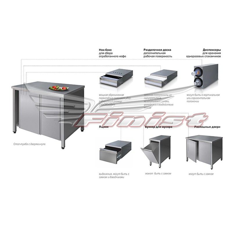 Стол — тумба с распашными дверцами серии «СТПд», предназначена для разделки и последующей обработки пищевых продуктов. Однако благодаря наличию закрытого объёма, столы — тумбы обеспечивают аккуратный внешний вид кухни и используется для хранения посуды, инвентаря, столовых приборов и сухих продуктов.