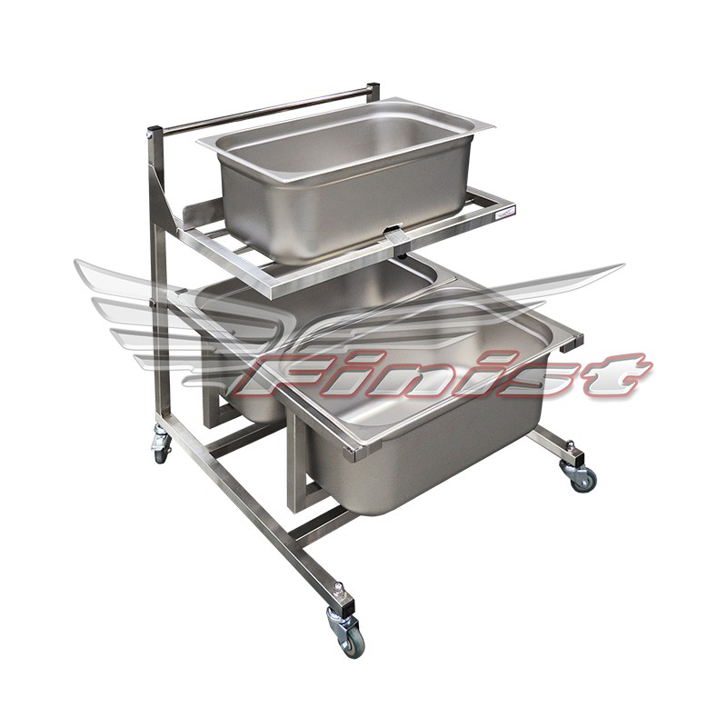 В стандартном исполнении тележка полностью выполнена из нержавеющей стали. Опционально её каркас возможно окрасить полимерно-порошковой краской в необходимый цвет.