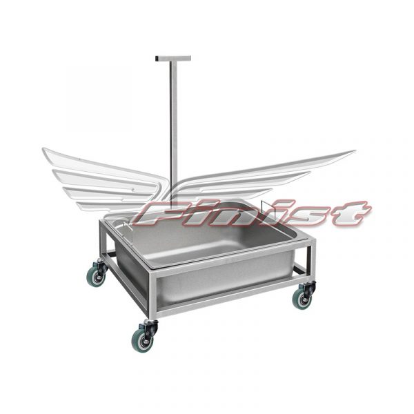 В стандартном исполнении тележка полностью выполнена из нержавеющей стали. Опционально её каркас возможно окрасить полимерно-порошковой краской в необходимый цвет.