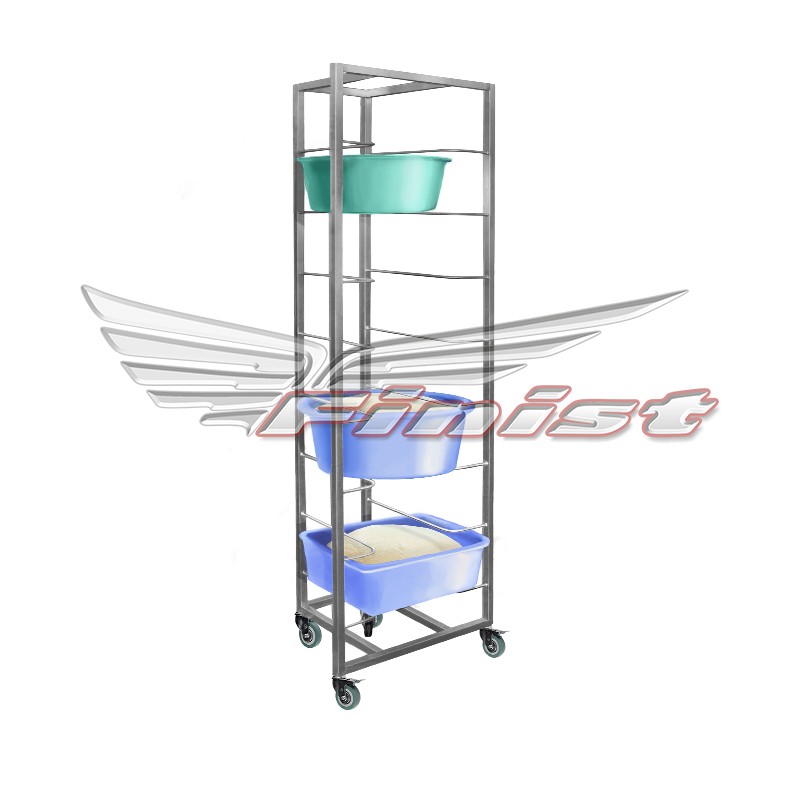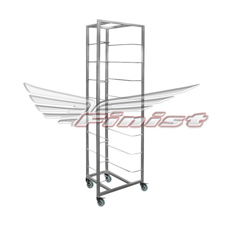Каркас сварен из нержавеющей профильной трубы, направляющие изготовлены из листовой нержавеющей стали. 8 уровней расстояние между уровнями 185 мм Контейнеры в комплект не входят.
