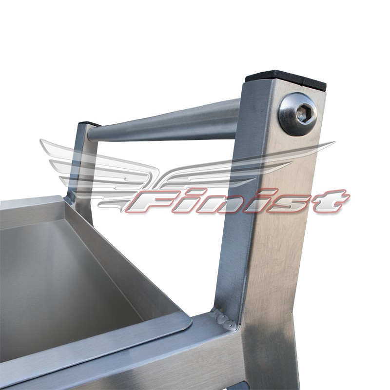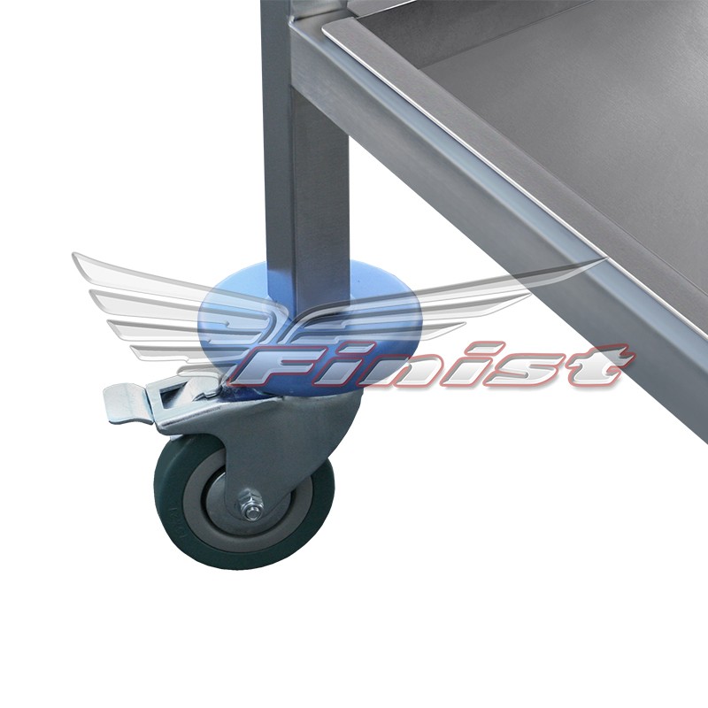 Представляет собой сварную конструкцию из профильной трубы со съемными поддонами глубиной 20 мм. Выполнена полностью из нержавеющей стали. Передвижение тележки осуществляется на четырех поворотных колесах, диаметром 100 мм, два из которых имеют тормозное устройство.