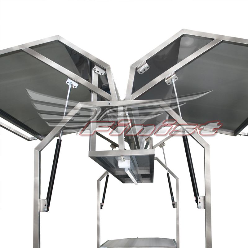 Для того чтобы открыть антивандальные панели, достаточно потянуть за ручки, и, при помощи подъемных механизмов, панели поднимутся вверх.