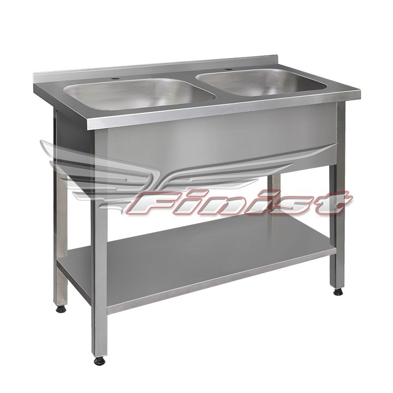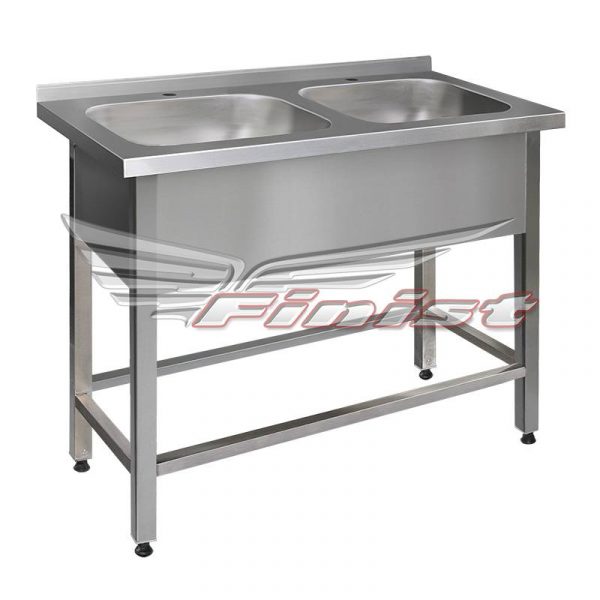 Ванна моечная с 2 цельнотянутыми мойками. Серия «Премиум» ВМПц изготавливается на сварном каркасе. Сварная труба и фартук с 3-х сторон выполнены из нержавеющей стали. Каркас оснащен регулируемыми по высоте опорами для компенсации неровностей пола.